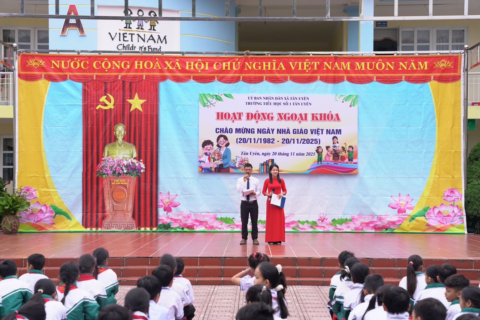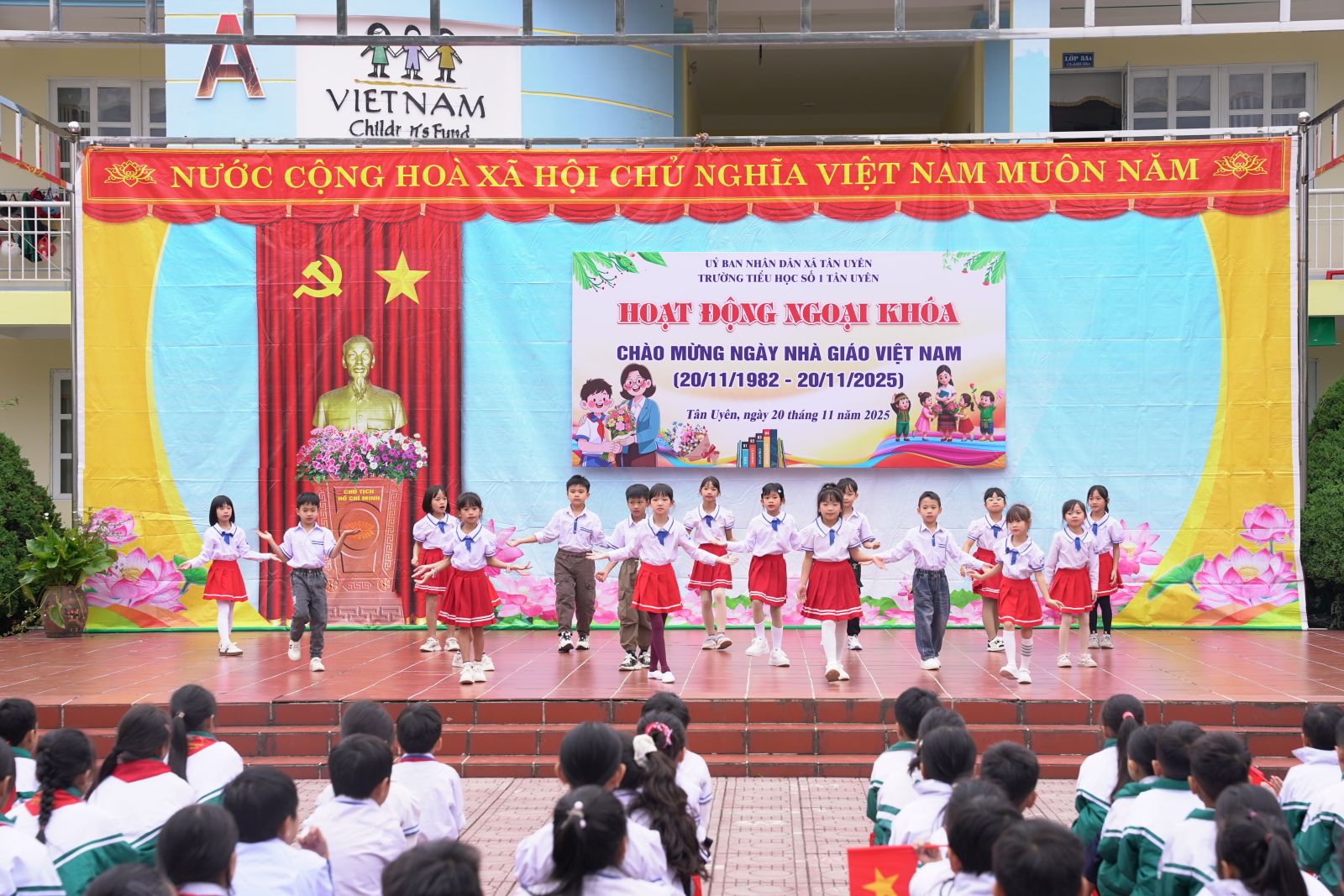 Nhằm giáo dục truyền thống lịch sử, yêu nước; phát huy tinh thần Phù Đổng “khoẻ để học tập, lao động, góp phần xây dựng và bảo vệ tổ quốc” cho học sinh. Sáng ngày 20/11, Trường Tiểu học số 1 Tân Uyên tổ chức “Ngày hội vui khỏe”. Đây là hoạt động thiết thực chào mừng Ngày Nhà giáo Việt Nam 20/11, đồng thời tạo sân chơi lành mạnh, giúp các em rèn luyện thể chất, phát triển tinh thần đoàn kết và thể hiện lòng biết ơn đối với thầy cô giáo. Tham dự Ngày hội có các đồng chí trong Ban giám hiệu, giáo viên, nhân viên và các bậc phụ huynh.