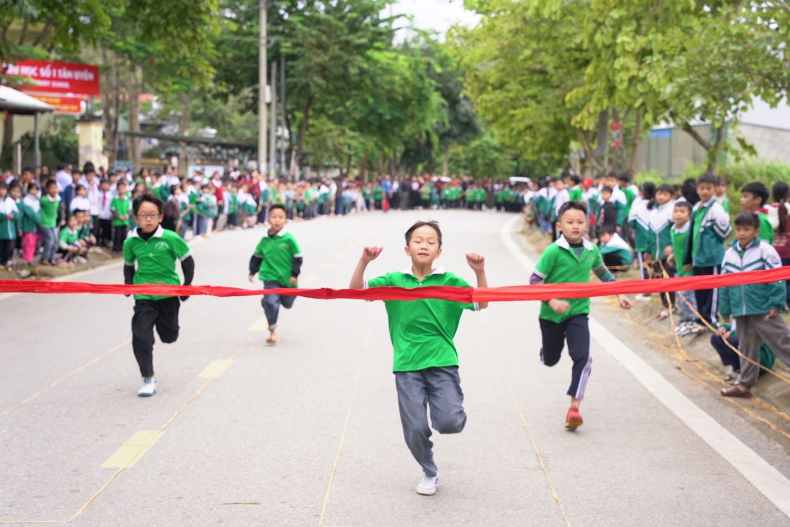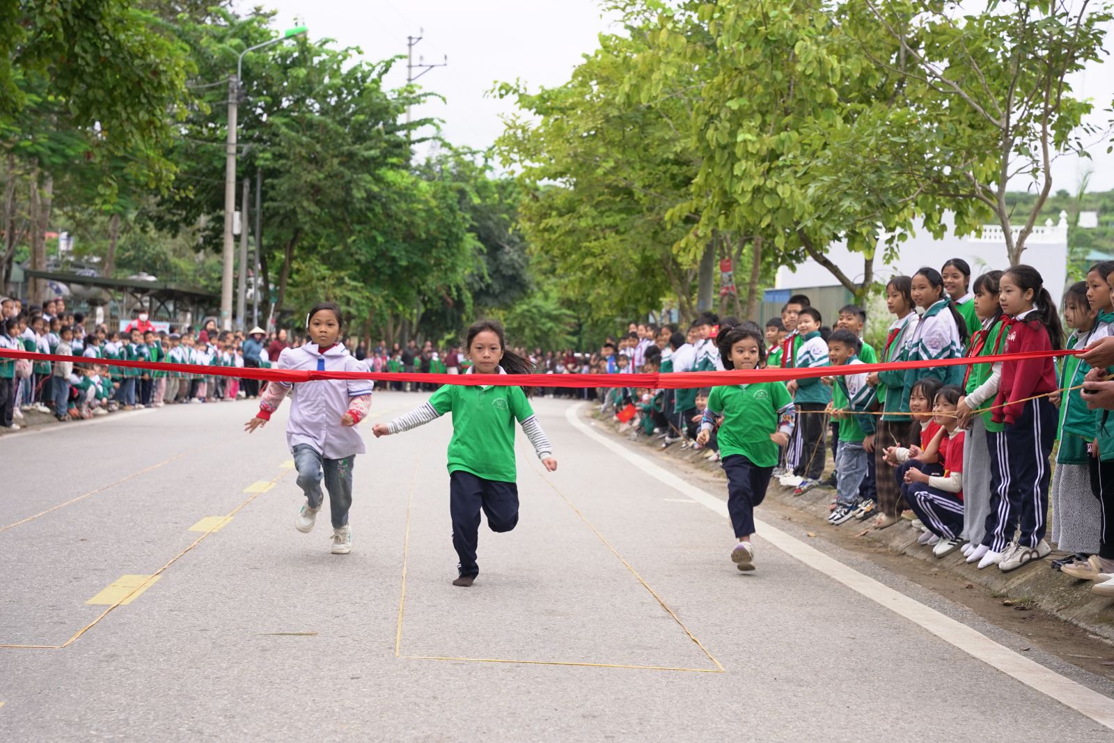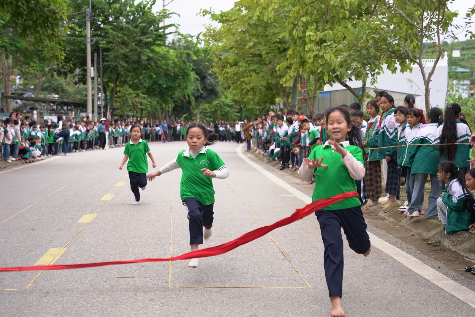 Ảnh: Các em học sinh tham gia thi đấu môn điền kinh (Chạy 60 m)